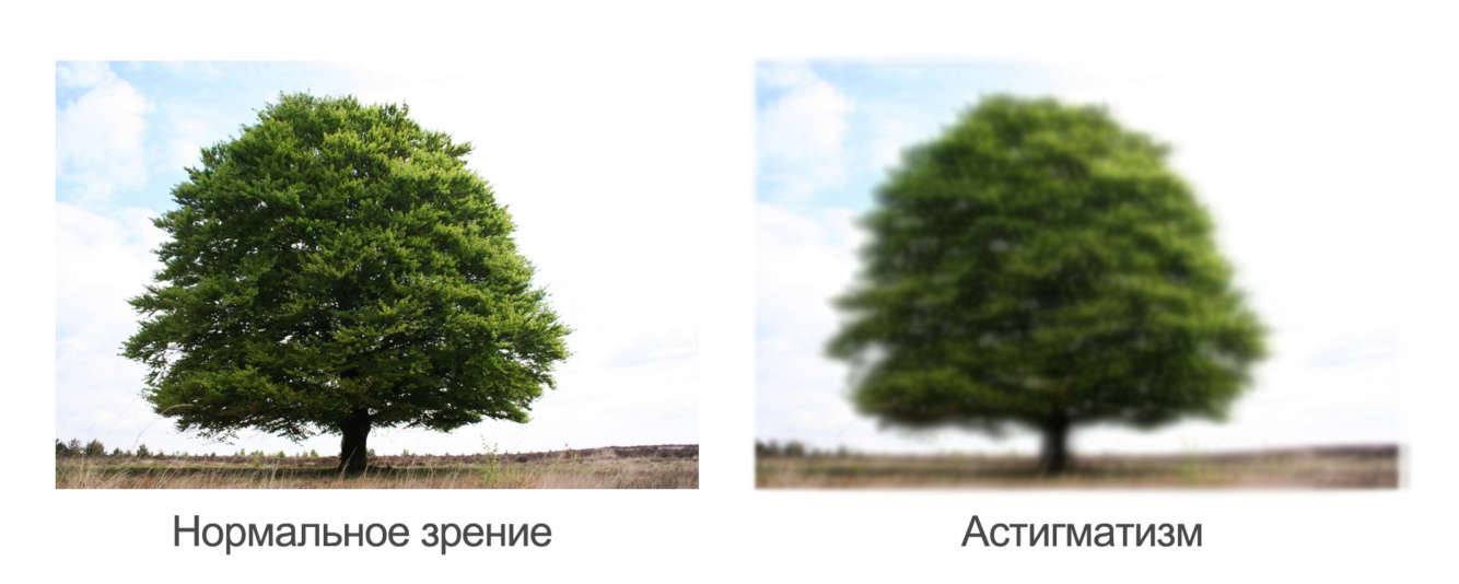 Неправильная форма роговицы и хрусталика создают искаженный образ, который поступает в головной мозг. Если у здоровых глаз точка преломления света одна, то у больных астигматизмом — их две. Человек видит размытое изображение картины мира, не может определить правильное пространственное расположение объектов.
