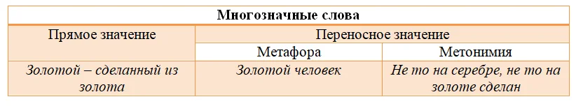 Кроме того, есть и еще группы, на которые делятся слова по своему значению. Они могут быть употреблены как в прямом, так и в переносном смысле: