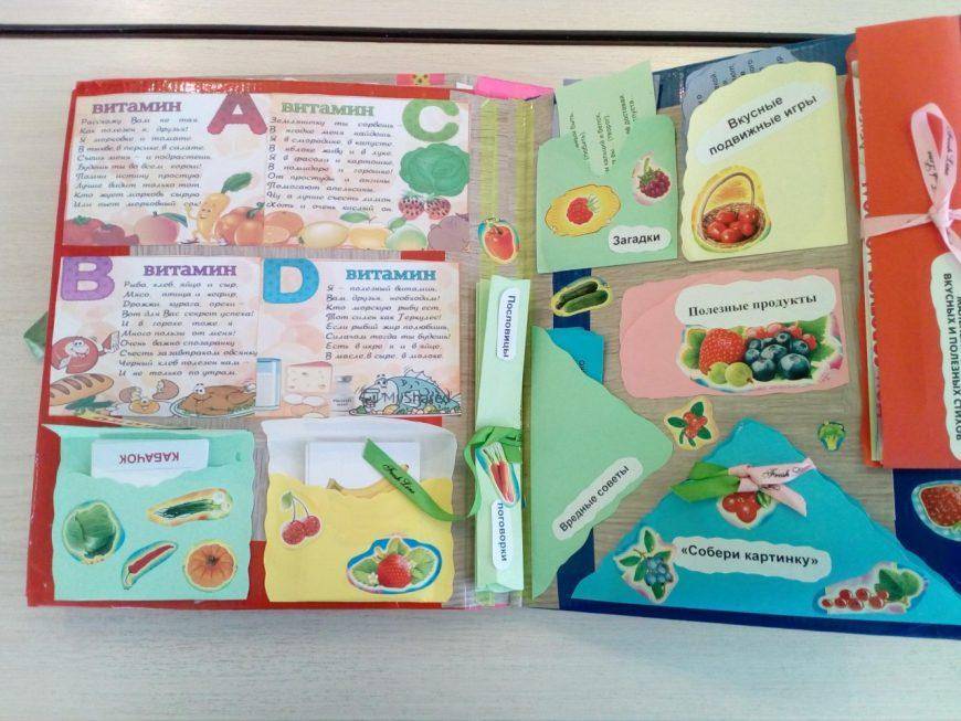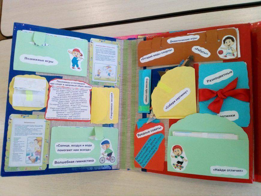 Вместе с ребенком выбирают тему и продумывают план, включающий в себя необходимые материалы. Затем обсуждают макет – определяют, как будет представлен каждый пункт плана: в виде игры, книжечки, стихотворения, задания. Вместе с ребенком подготавливают их (можно скачать тематические картинки, карточки, игры в интернете) – рисуют, складывают, вырезают, клеят. Все это размещают в папку в той последовательности, которую выберет сам ребенок. В конце работы нужно ярко украсить обложку папки.