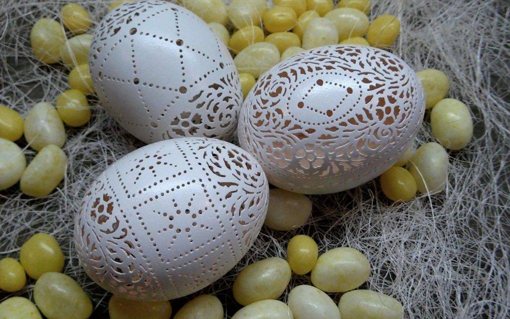 Куриное яйцо промывают, сушат. Прокалывают тонкой иглой с двух сторон и выдувают содержимое. Скорлупу ещё раз моют, сушат, а потом выполняют на яйце рисунки или другой декор.