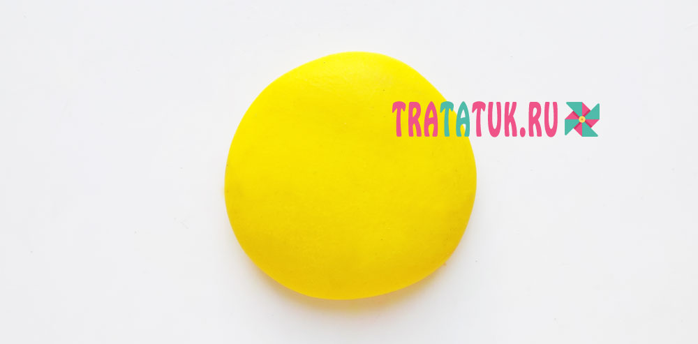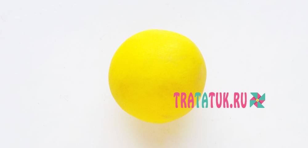 Основа нашей рыбки будет выполнена из желтого пластилина. Но сначала скатываем шарик из этого пластилина.