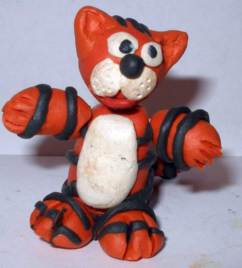 Из того же котика может получиться леопард. Как сделать из пластилина леопарда? Начинать делать его следует точно так же, как и кота. Но уши делаются не в форме треугольников, а немного закругленной формы (это хорошо видно на фото). Отличительной чертой леопарда являются пятна на его теле. Для того чтобы их сделать, нужно скатать несколько маленьких шариков и налепить их на леопарда так, чтобы они немного распластались на его теле.