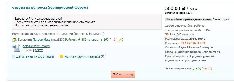 Такая работа не постоянна и ее нужно искать на биржах фриланса, но оплата здесь выше и может достигать 100 руб. за отзыв.