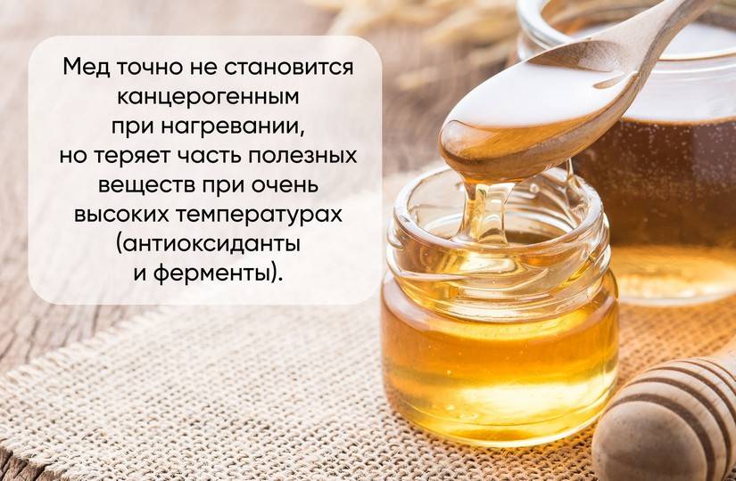 Мед точно не становится канцерогенным при нагревании, но, возможно, теряет часть полезных веществ при очень высоких температурах (антиоксиданты и ферменты).