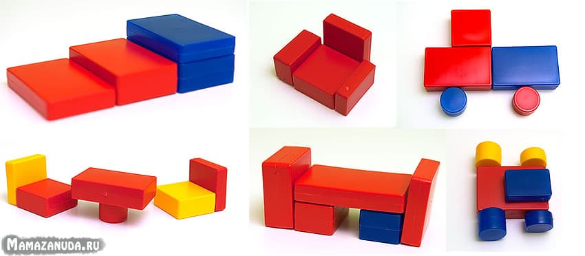 Для занятий по конструирования, я взяла на вооружение . За первые пару занятий у меня получилась масса простейших объектов реальной жизни.