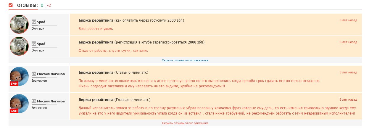 Но и это еще не все. Представьте, что вы долго работали над повышением рейтинга, заслужили доверие среди заказчиков и вроде вот оно счастье. Но вдруг вы поучаете бан… Заблокировать вас могут по различным соображениям. Это может быть передача личных данных клиенту, что будет на вашей совести или же личная неприязнь заказчика, который подал на вас в арбитраж. Все работы по поднятию рейтинга на бирже копирайта, как говорится – «коту под хвост».