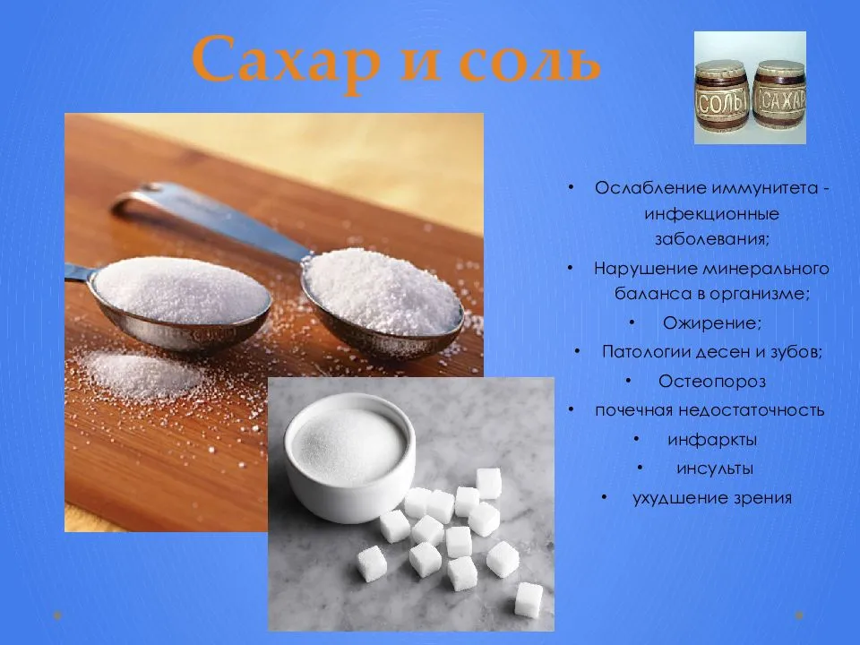 Избыток соли приводит к задержке жидкости в организме, создает дополнительную нагрузку на почки и сердечно-сосудистую систему, неблагоприятно влияет на обмен веществ. Помните, что многие продукты, такие как рыба, стручковая фасоль, шпинат, яйца, кефир имеют высокое содержание соли от природы, так что добавлять ее в детские блюда отдельно не требуется. Американская ассоциация педиатров советует свести добавленную соль в детском рационе к разумному минимуму. Считается, что привычка к соленому вырабатывается в раннем детстве, так что ограничение соленых продуктов (чипсы, сухарики, попкорн, соленья) в меню ребенка поможет ему или ей сформировать более здоровое пищевое поведение в будущем**.