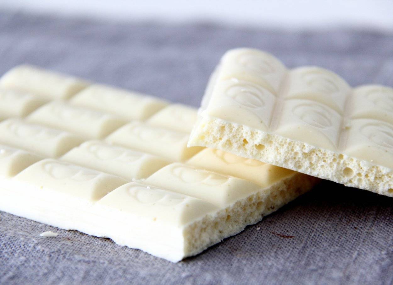 На этикетках белого шоколада должны значиться молоко, масло какао и сахар. Вкус у такого десерта достаточно приторный, лишь издалека напоминающий настоящий шоколад. Особенно критике его подвергают любители какао-бобов, вкус которых в такой разновидности придает только какао-масло.