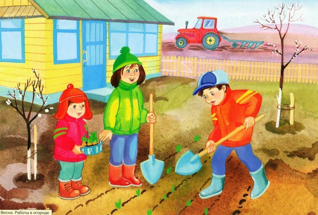 - Труд на природе: дети работают в цветнике, на клумбе, в огороде.