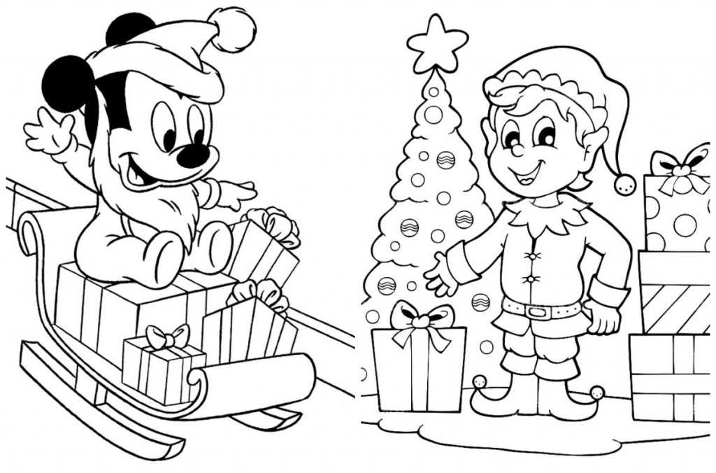 Маленький Микки Маус переоделся в Деда Мороза и мчится на санках с подарками. А эльф приготовил сюрпризы для послушных ребятишек.