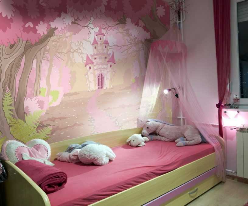 Комнату принцессы можно оформить обоями с изображением лесных фей, волшебниц. Это стилистическое решение прекрасно подходит для девочек, которым нравится носить красивые платья, завивать локоны и модничать.