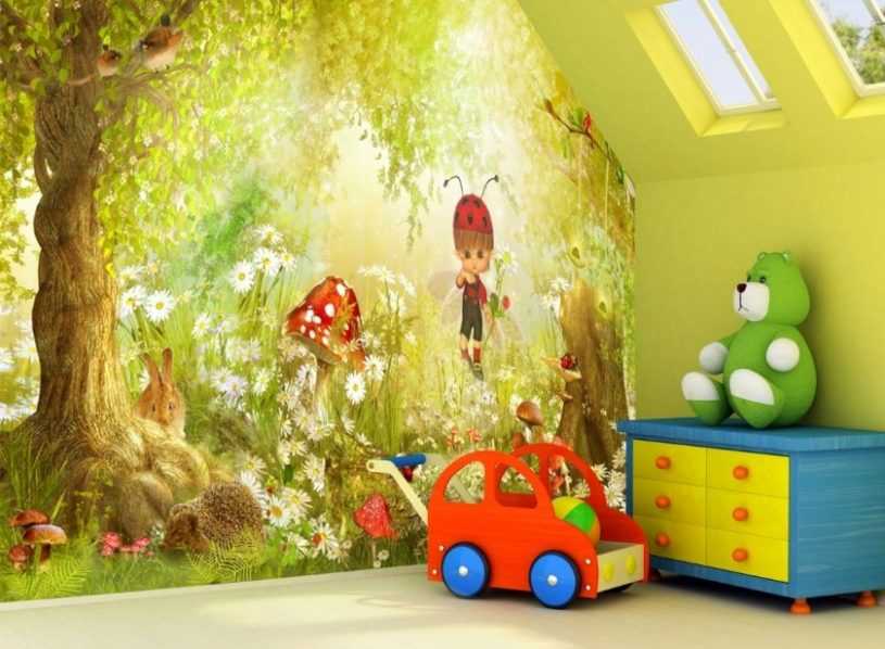 Для малышей до 2 лет больше подойдут спокойные цвета и довольно крупные изображения. Ими могут стать целые лесные полянки, которые часто встречаются в старых добрых мультиках.