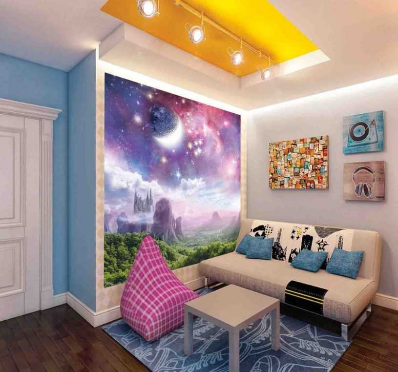 Фотообои – отличный способ сделать дизайн интерьера тематическим и атмосферным. Изображение с любимыми героями из комиксов или мультфильмов на стенах точно порадует мальчиков до 13 лет. Подростки оценят минималистичный и стильный интерьер с изображением киногероев, кадров из любимых сериалов и фильмов. Можно также сделать принт под заказ на основе собственного рисунка или фотографии, если юноша любит рисовать или красиво фотографирует.