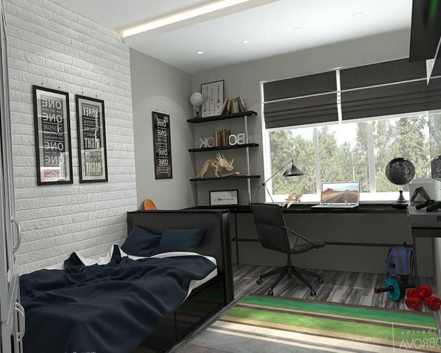 Для старшеклассника можно создать оригинальный интерьер в стиле лофт или индастриал с обоями, имитирующими кирпичную кладку.