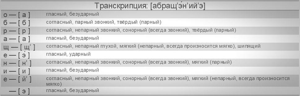 Ударение падает на третий слог «обращéние». Часть речи — существительное среднего рода второго склонения. Нарицательное, неодушевленное.