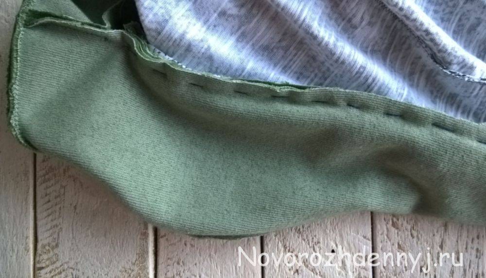 - Пристрочите рибану к основной ткани трикотажным швом.