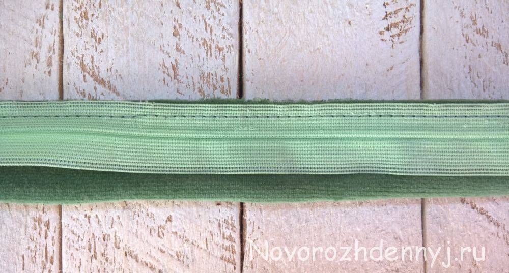- Прошиваем край на защитной планке, выворачиваем. Прилаживаем нашу молнию, пристрачиваем.