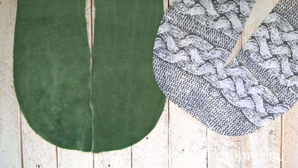 Из двух полотен вырежьте прямоугольники одинаковой величины, с одной стороны закруглите каждое.