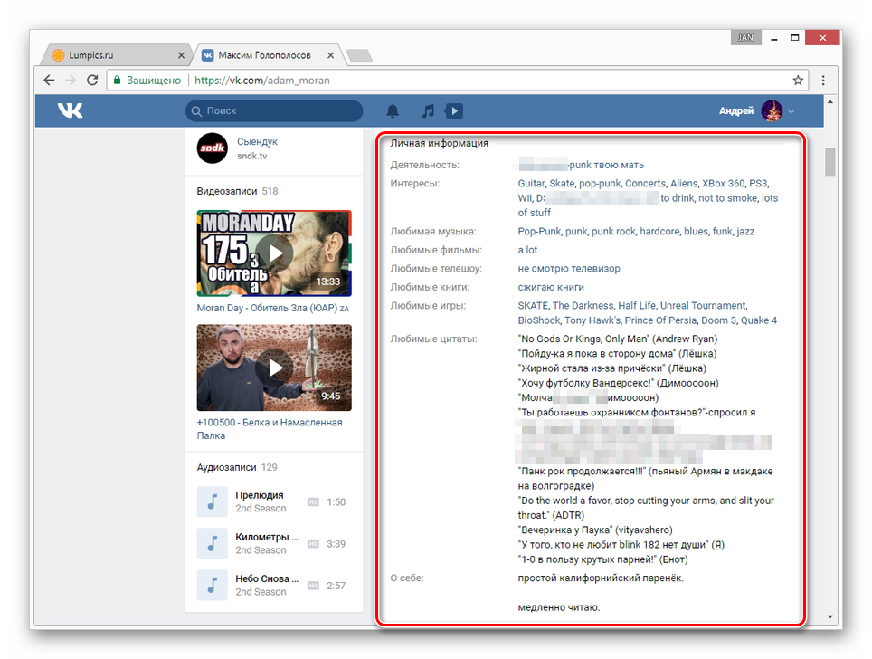 Прочие пункты нельзя назвать обязательными, однако их заполнение все же может повлиять на восприятие вашей страницы окружающими.