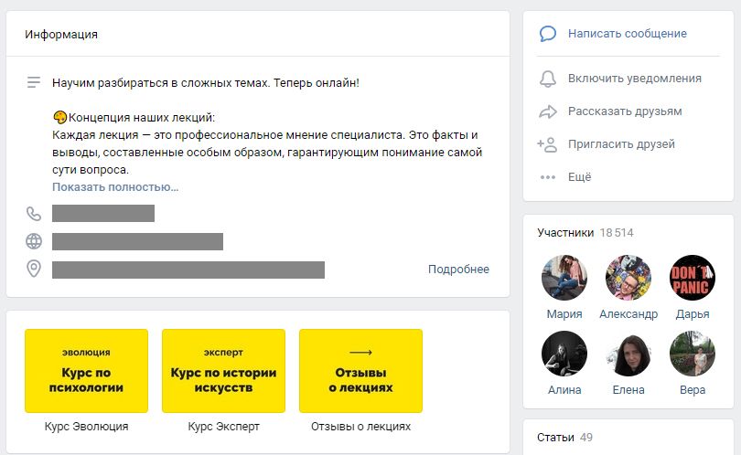 Вот скриншоты из группы лектория. Лекции – это услуги в сфере развлечений – неосязаемая штука, от которой неизвестно, чего ожидать. Что захочет узнать клиент?
