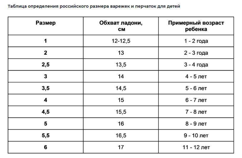 Для вязания детских рукавичек по готовым моделям может быть полезна сводная таблица размеров.