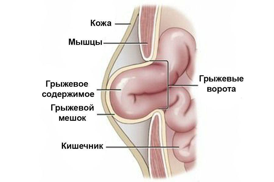 Грыжа возникает, когда органы брюшной полости (обычно кишечник) проникают через переднюю брюшную стенку и выпячиваются под кожей.