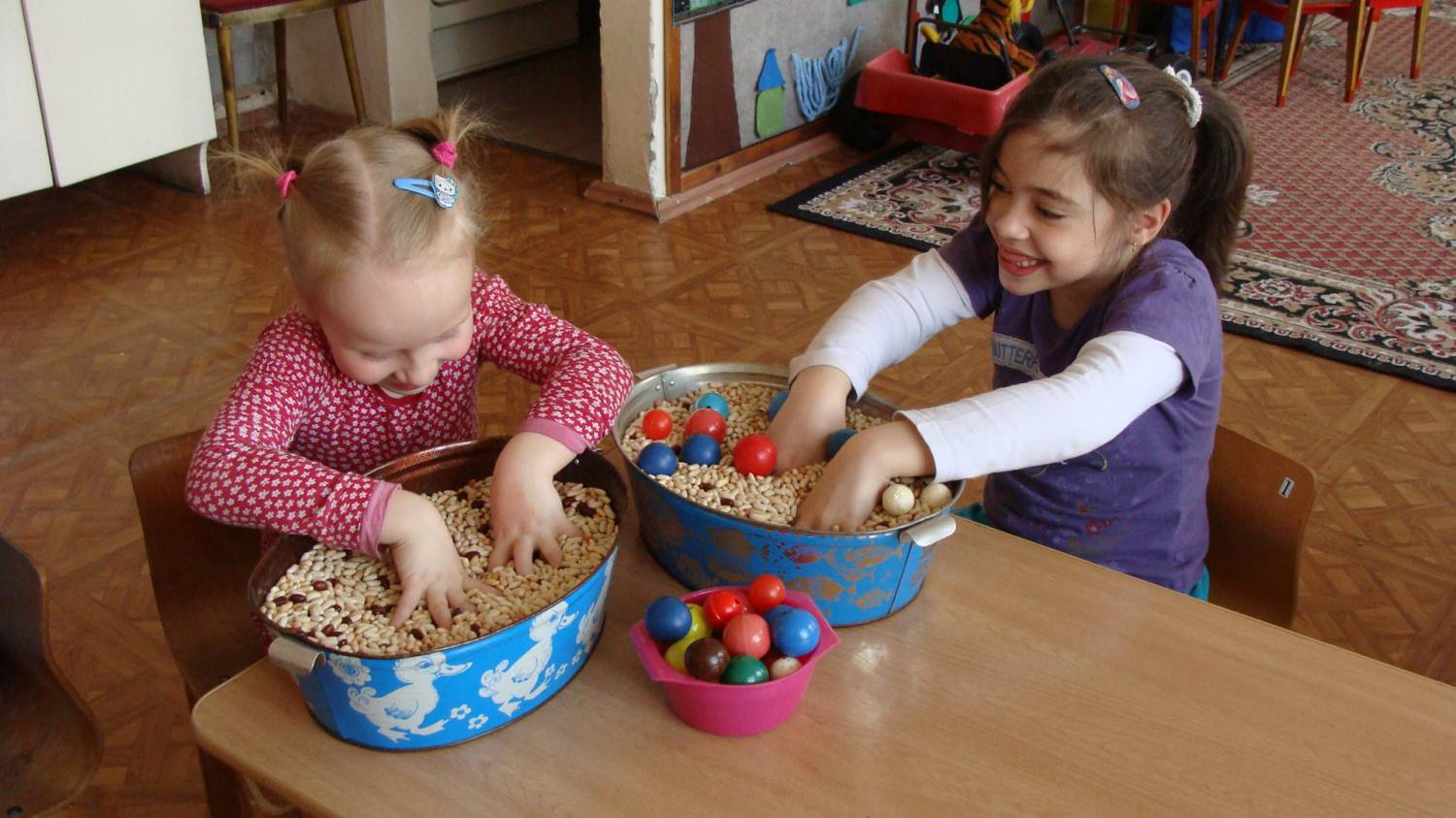 Можно предложить ребёнку поиграть в «Золушку» – сортировать не слишком мелкую крупу, горох, сухие макароны, фасоль.