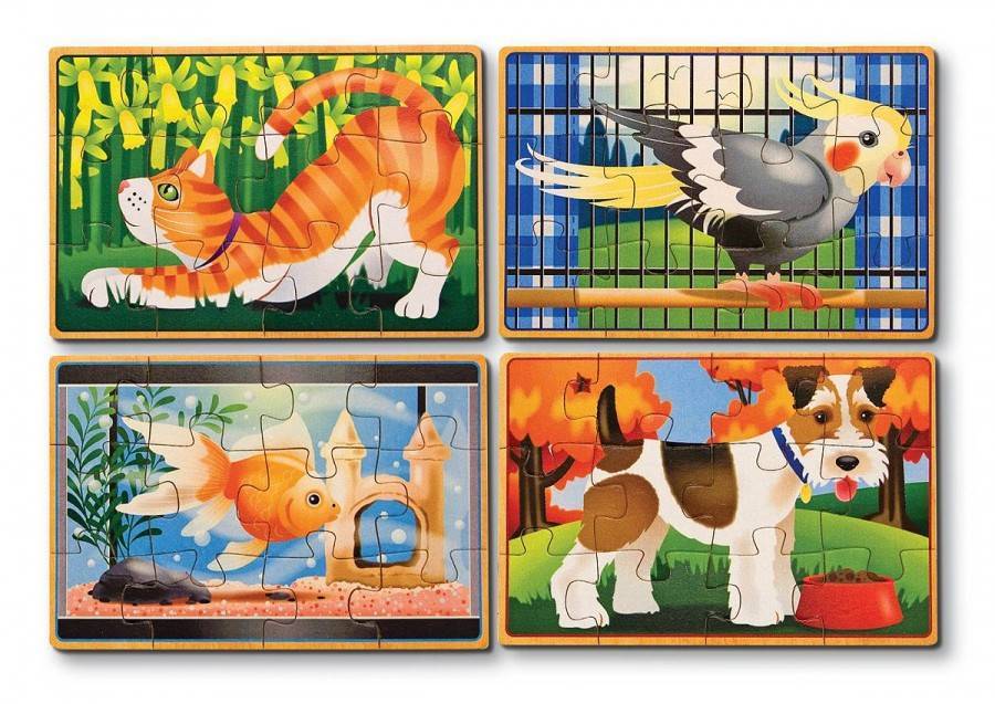 Трехлетние малыши перестают пробовать мир «на зуб», их поведение становится осмысленным. Пазлы на 4–16 фрагментов не будут утомлять, а научат концентрироваться на монотонном занятии.