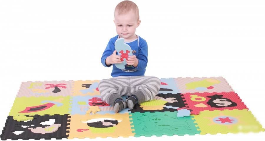 Самостоятельно собирать картинки даже из 2-3 фрагментов такие крохи еще не умеют. Знакомиться с пазлами часто начинают с напольного коврика-пазла из изолона