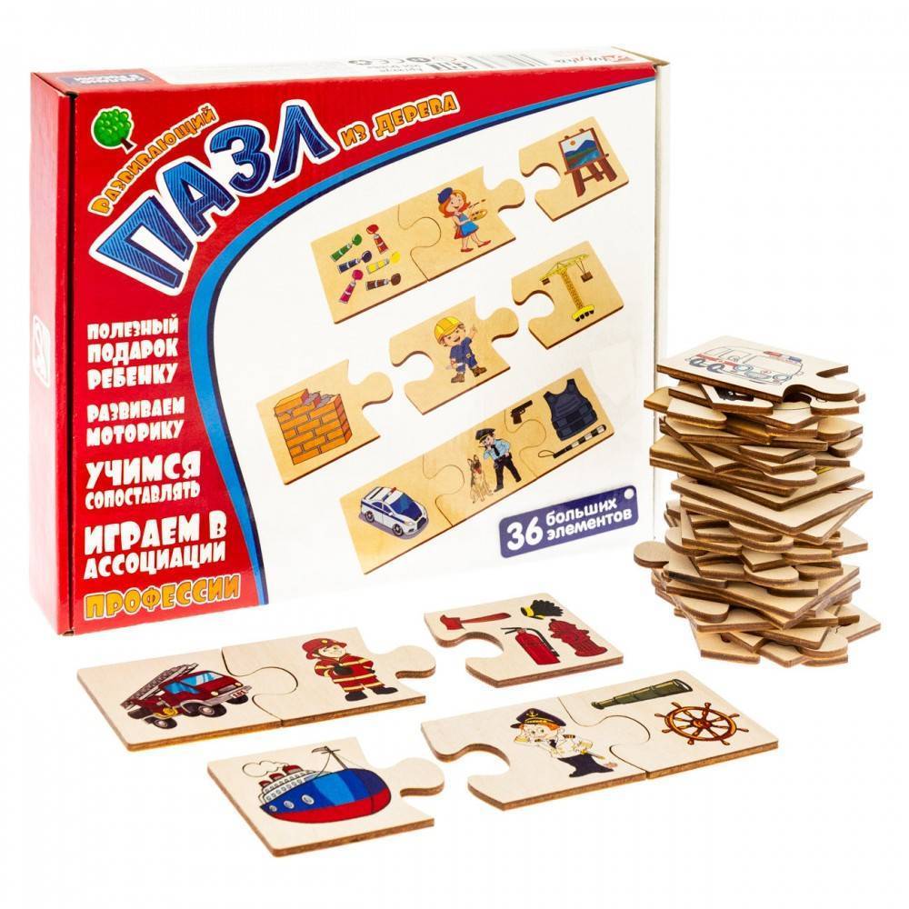 Вторую строчку занимает игра-головоломка, которая поможет закрепить названия профессий и ассоциативные предметы к ним. В комплекте − 36 больших деталей из экологически чистой древесины. Гладкие поверхности гарантируют безопасность во время игры. Сцепление очень крепкое, но доступное для маленького ребенка