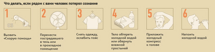 Итак, первая помощь при солнечном ударе состоит из следующих действий: