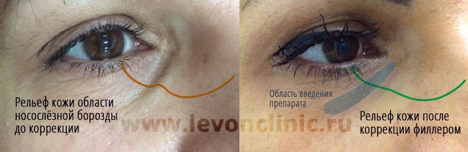 инъекциям филлеров. В этом случае принципы коррекции совпадают с процедурой коррекции носослёзной борозды.