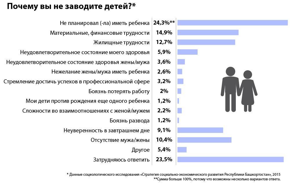 — Я, в принципе, не против иметь детей, ведь кому-то нужно передать имущество, — говорит Анатолий. – Но когда-нибудь потом, ведь сначала надо достроить дачу, выплатить ипотеку за квартиру, кредит за гараж, потом взять кредит на машину и выплатить его, потом сделать ремонт в ипотечной квартире, а то ребенка нельзя рожать в нищету… А еще опасаюсь, что ребенок изменит мой образ жизни: я люблю поездки, встречи с друзьями, отдых за компьютером, активное посещение разных мероприятий, хочу свободно тратить деньги на собственное хобби…