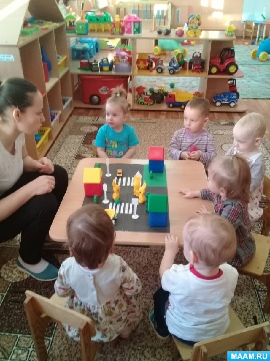 Конспект занятия по конструированию из строительного материала во второй младшей группе «Разные дорожки для машин» Конспект занятия по конструированию во второй младшей группе Тема: «Разные дорожки для машин» для младшей группы Виды детской деятельности: игровая, коммуникативная, познавательно-исследовательская, продуктивная. Цели: учить детей строить дорожки способом приставления деталей….
