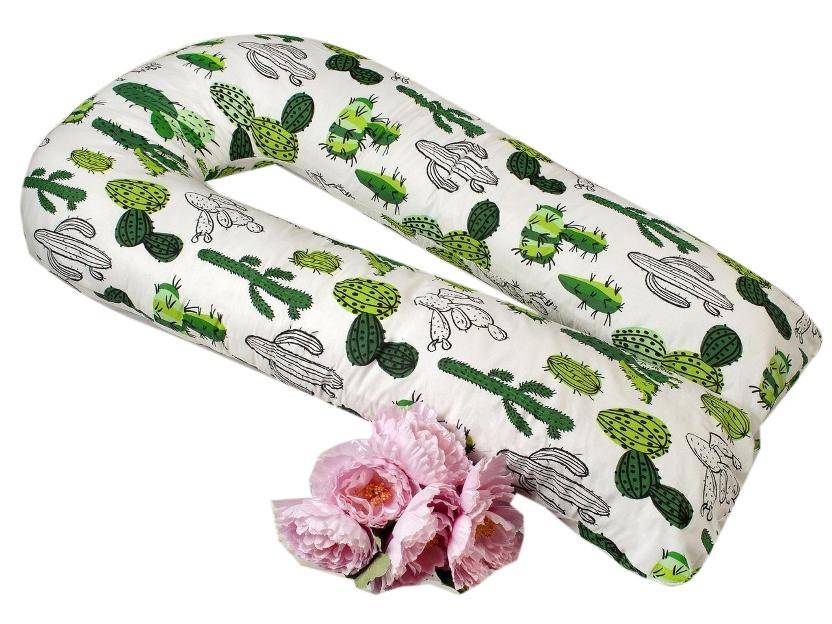 Ее разрабатывали специально для сна на боку, причем некоторую часть такой подушки можно положить и между колен. Подушка обладает приятными нежными оттенками. После рождения малыша ее можно использовать в качестве ограничителя положения или перемещения. Чехол изготавливается из хлопка – его разрешается стирать в машинке.