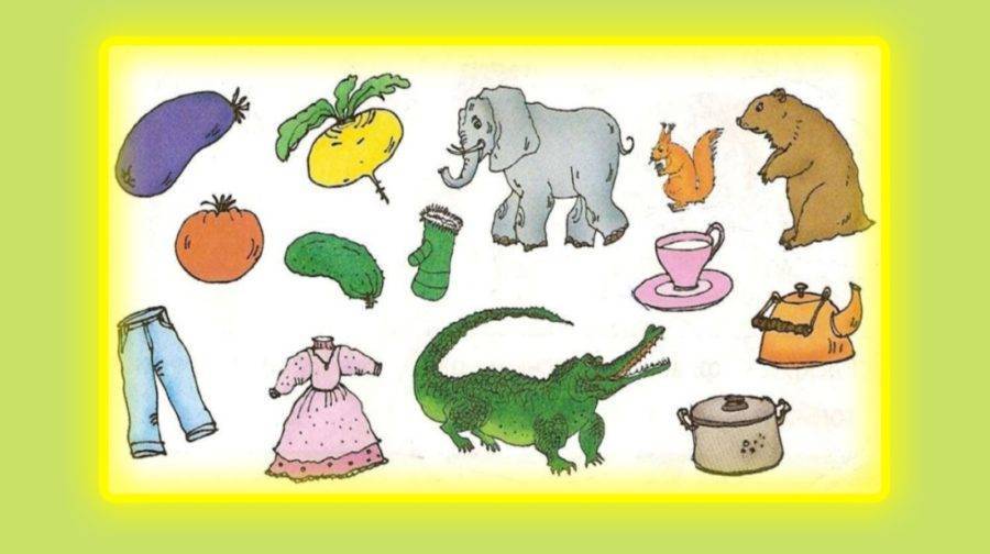 Цель: учить детей обобщать, выбирать группы предметов по обобщающему слову, развивать внимательность.
