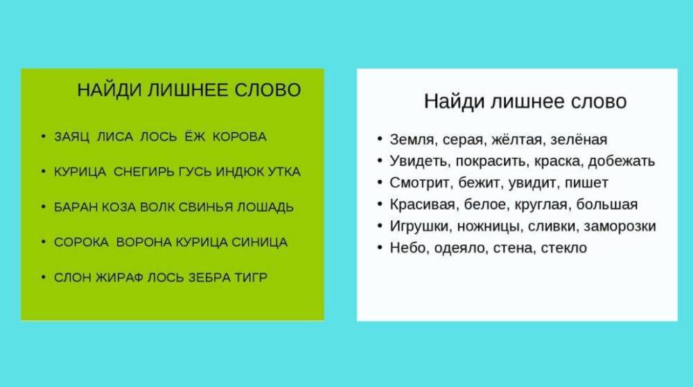 Называйте ряд слов, а ребенок должен сказать, какое из них лишнее, аргументировать свое мнение: