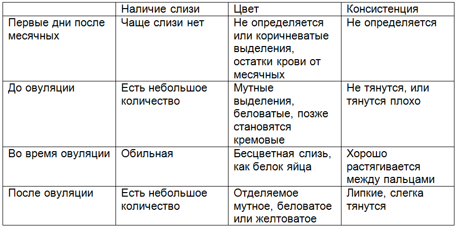 - Определённая фаза менструального цикла. Например, выделения перед овуляцией скудные. Секрет в эту фазу приобретает консистенцию желе, становится вязким и липким. Во время овуляции цервикальная слизь выделяется более интенсивно, консистенция у неё водянистая, напоминающая яичный белок. Послеовуляционный период характеризуется выделениями беловатого или желтоватого оттенка.