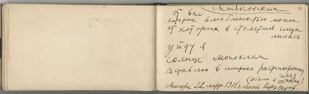 Маяковский без лишней скромности в альбоме оставил цитату из поэмы «Облако в штанах»: