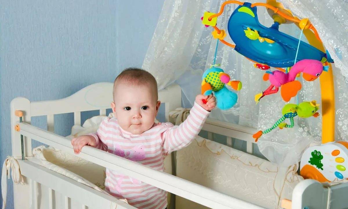 Для профилактики или при диагностировании содружественного косоглазия игрушки необходимо вешать с двух сторон, чтобы малыш не сводил глаза к носу, пытаясь увидеть яркий предмет