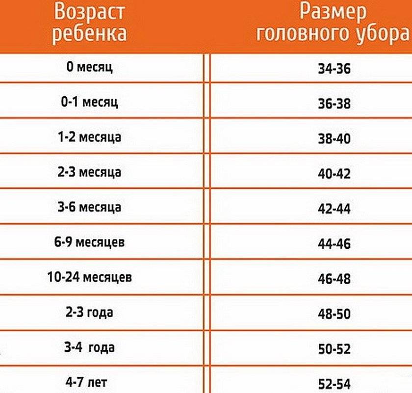 Актуальный для возраста размер головного убора будет точно совпадать с обхватом головы в сантиметрах.
