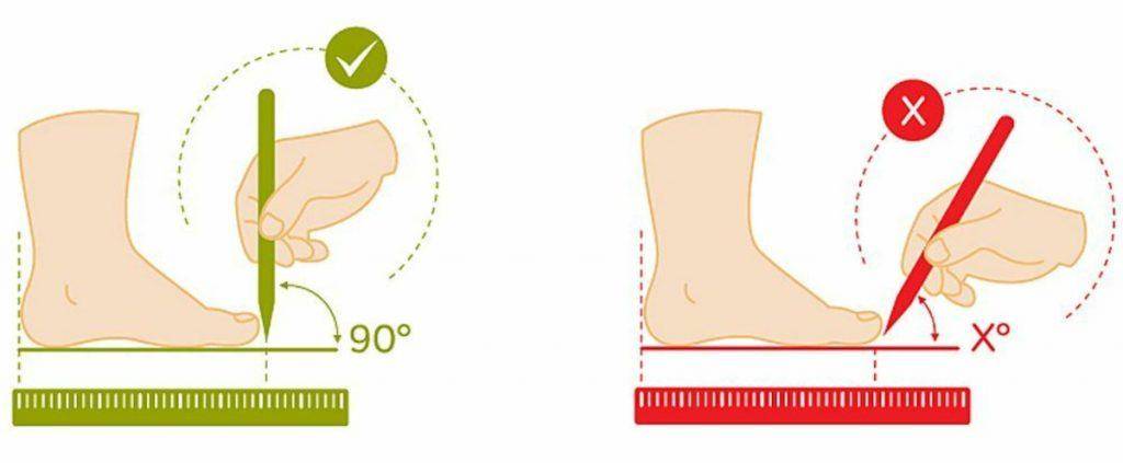 Обязательно измерять обе ноги и брать за основу показатель большей стопы.