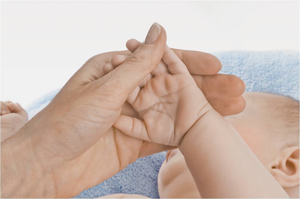 - Массаж ладоней. Это легкий и подходящий для любой возрастной группы способ развития ММ. Своим пальцем нужно водить по ладоням малыша, поглаживать их и массировать. Параллельно можно проговаривать слова пословиц.