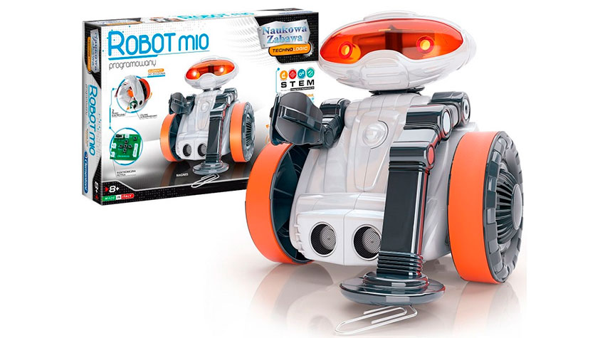 Относительно простой робот-конструктор, позволяющий собрать всего одного, зато очень милого робота. Конструктор содержит небольшое количество деталей крупного размера, благодаря чему процесс сборки робота трудностей не вызывает. Программирование отличается простотой и осуществляется с помощью кнопок, размещенных на самой игрушке. Сочетание этих параметров позволяет считать обозреваемый робот-конструктор оптимальным вариантом для детей от 8 лет, поэтому представленная интерактивная игрушка считается хорошим приобретением для детей младшего школьного возраста.