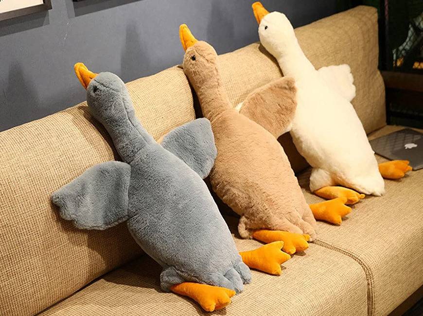 Это мягкая игрушка довольно внушительных размеров, которые колеблются от 50 до 130 сантиметров. Гусь представляет из себя мягкую позитивную птицу белого цвета. Отличный антистресс для беспокойных детей. Вместе с гусем дети охотно играют, засыпают и гуляют. Идеальное решение для подарка к любому празднику.