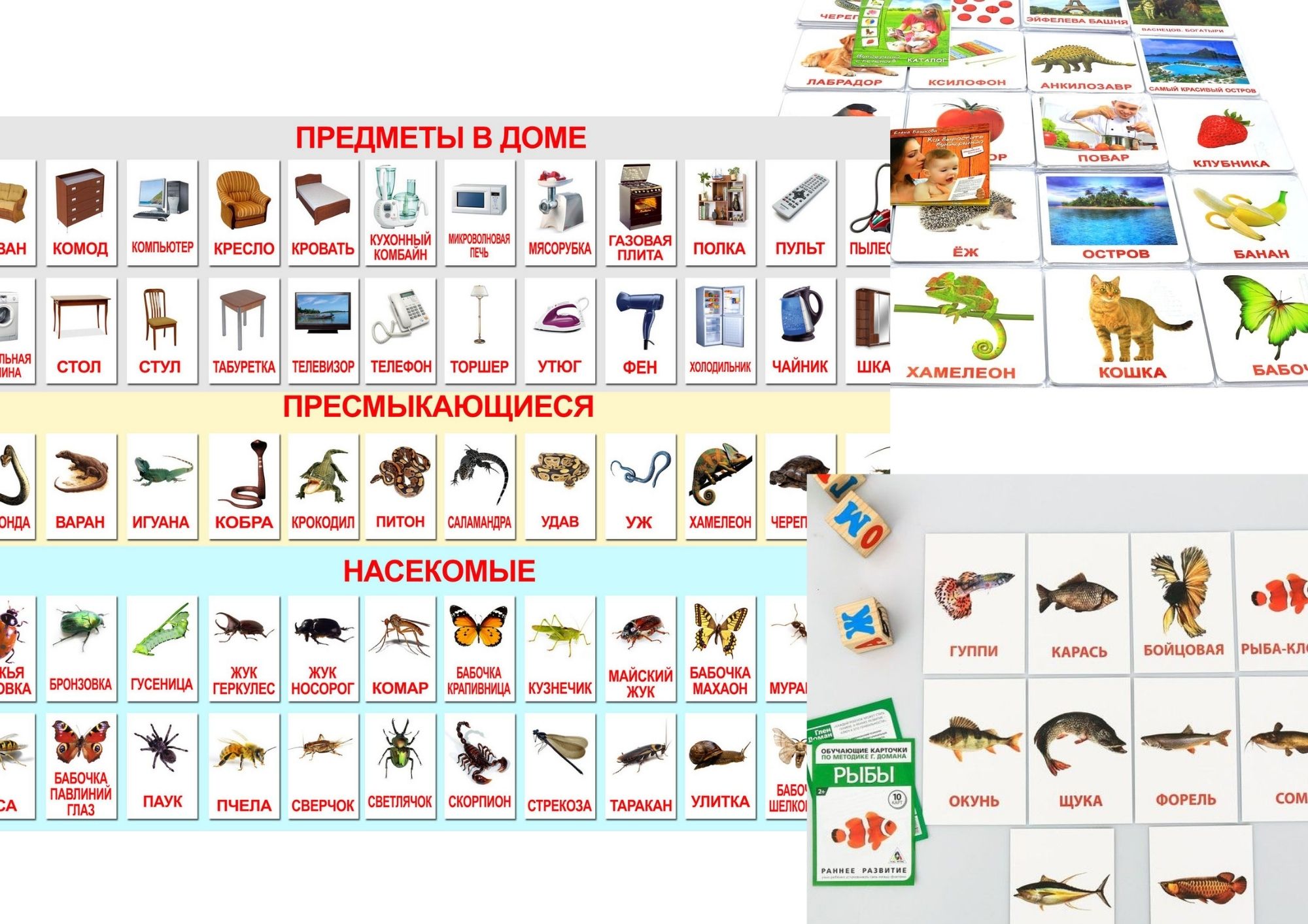 На нашем сайте можно скачать карточки Домана для обучения письму, счету, окружающему миру и цветам.