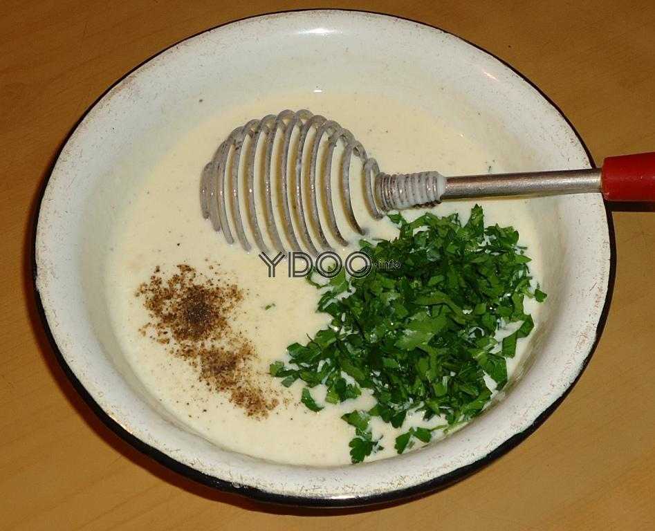 - Сделать соус: взбить желтки с горчицей, майонезом, специями, ложкой муки. Отдельно растопить сливочное масло и соединить с желтковой смесью, добавить сок половины лимона, или целого, если у вас мелкий.