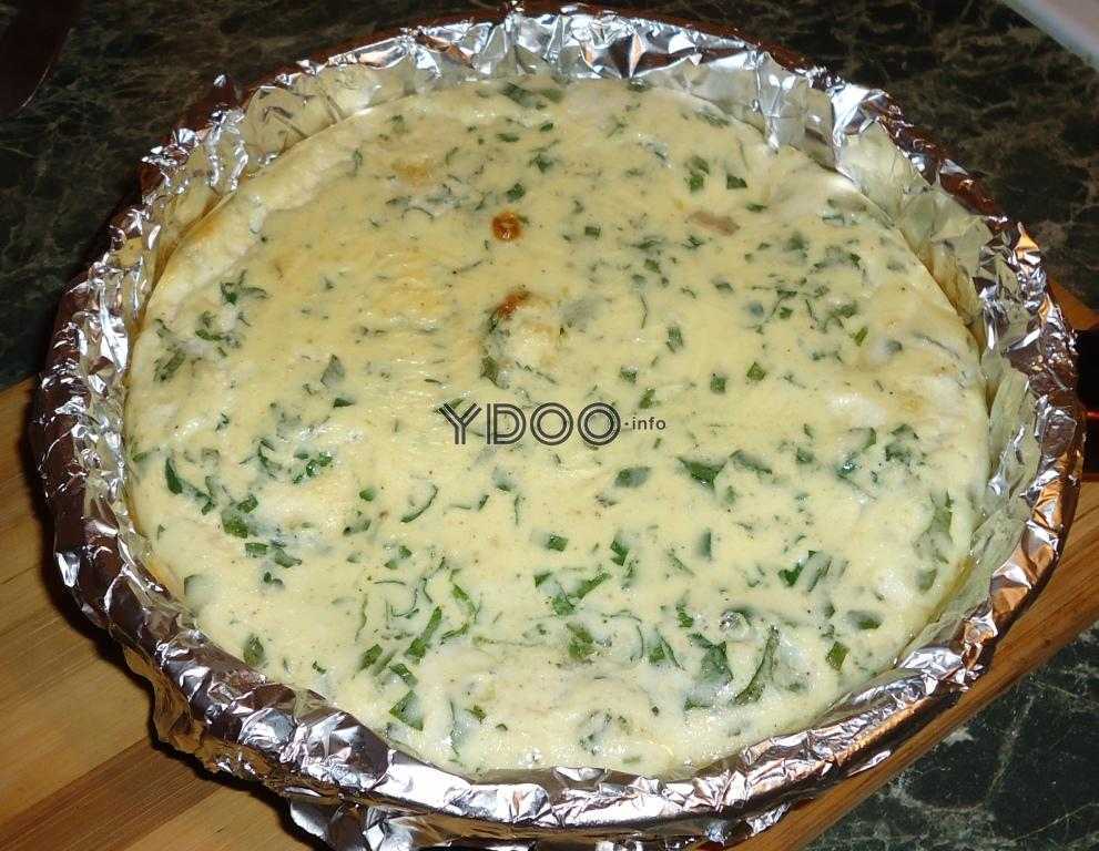 - Поставить в духовку на 40 минут, затем вынуть, посыпать тертым сыром и оставить в духовке до зарумянивания.