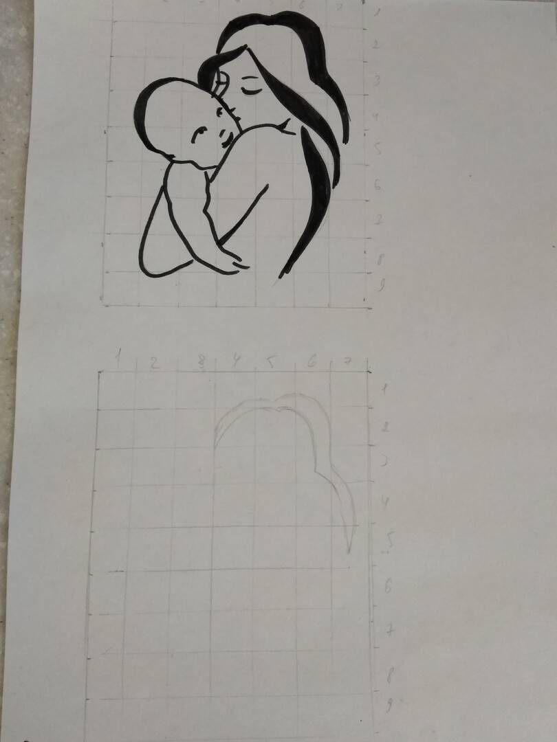Рисуем маму с ребенком на руках по клеточкам (сетка)