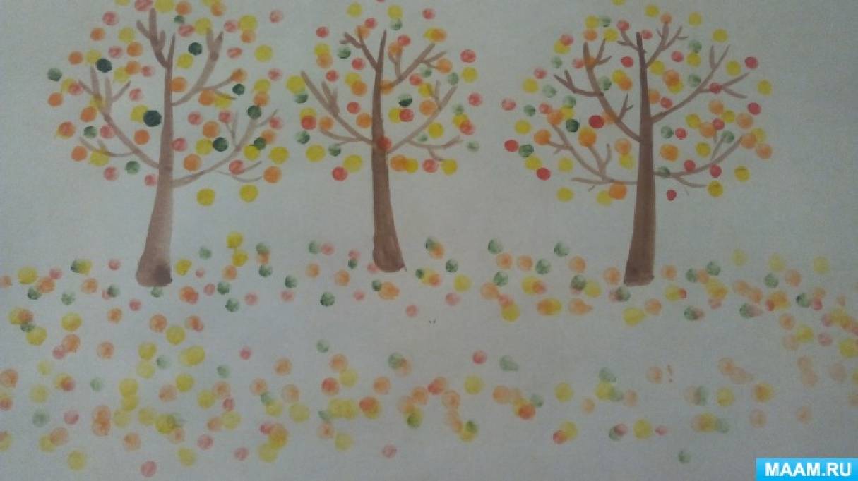 В: Ребята посмотрите деревья на наших листах совсем без листьев стоят, давайте их украсим разноцветными листьями, можно также нарисовать листопад.